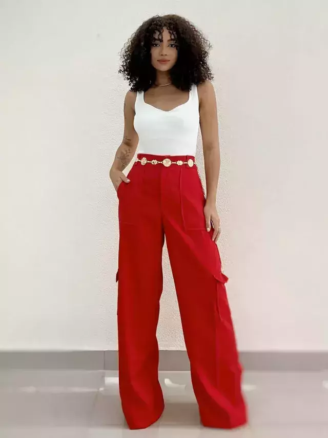 Calça Feminina Alfaiataria Pantalona Cargo Iris