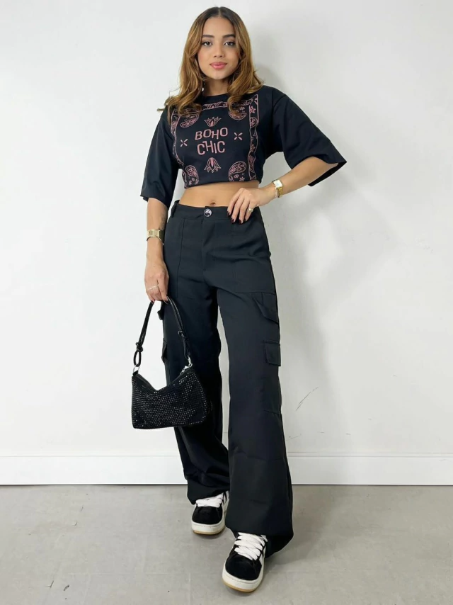- Possui bolsos frontais e laterais.