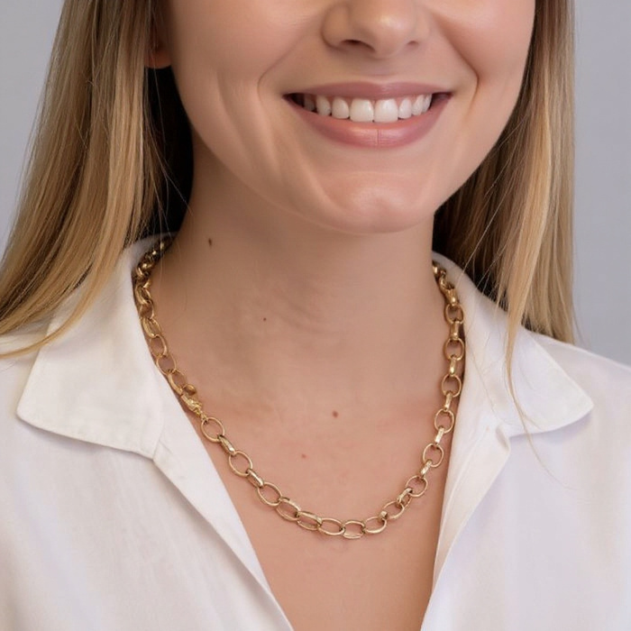 • Estrutura delicada com elos bem definidos, que se ajusta de forma elegante ao pescoço.
